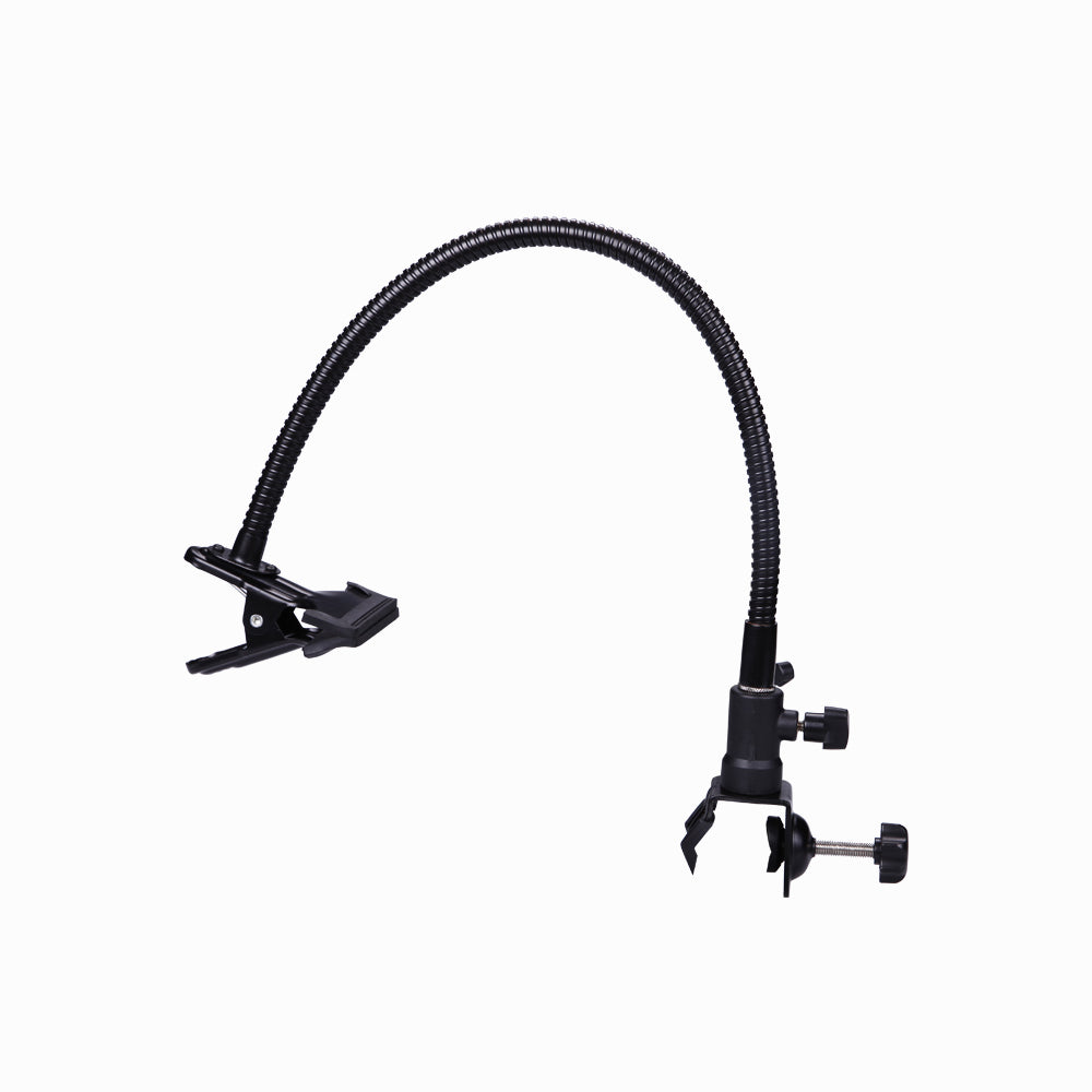 A multifunctional flexible adapter for mounting flashes, lightweight lamps, and various photo accessories. This model features a clip with rubber grips on one end and a standard 3/8" stand screw on the other.