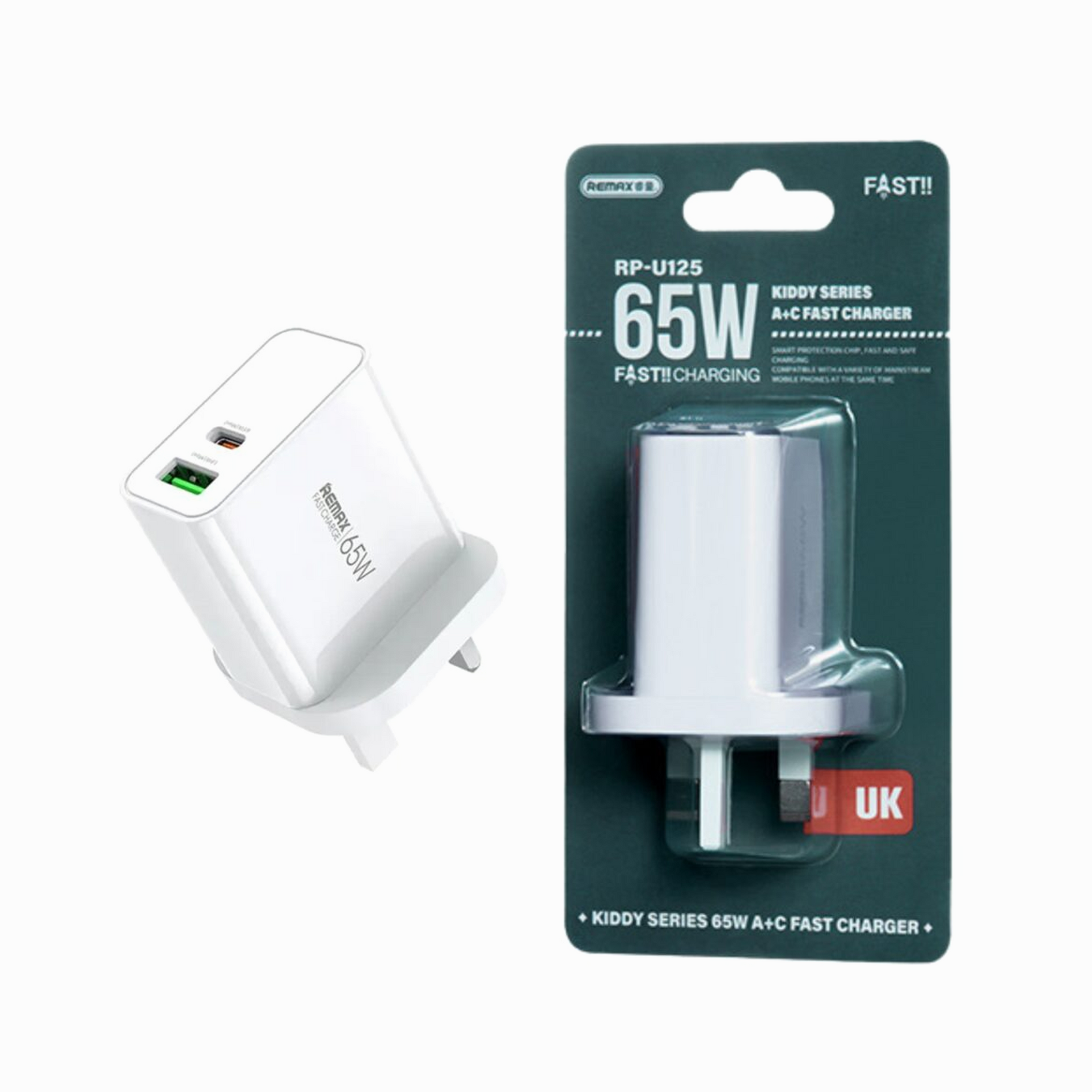 - REMAX RP-U125 65W GaN Fast Charger (USB & Type-C)