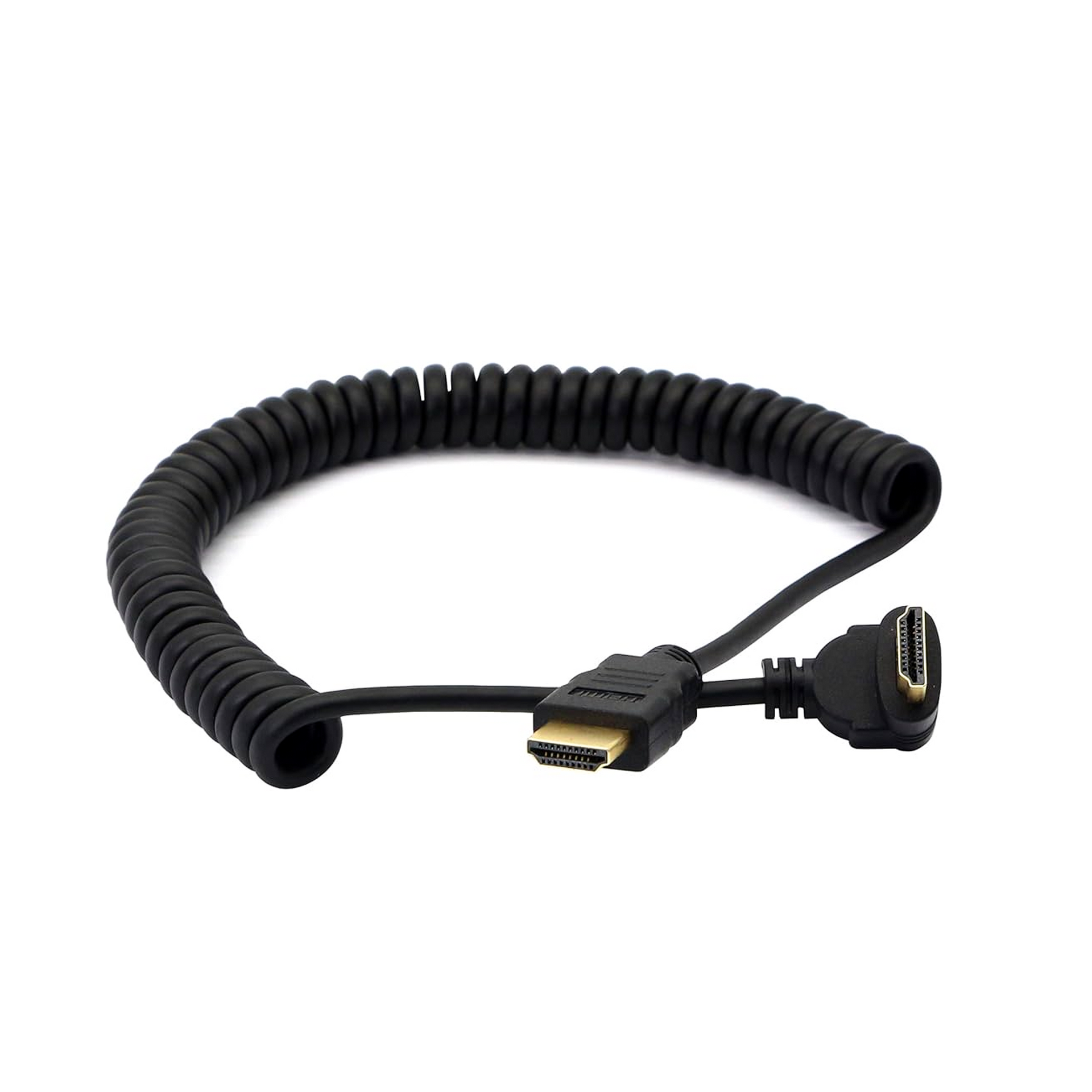- Right Angled HDMI Male to Male Extender Coiled Cable for 3D and 4K Ultra HD TV-2.4 M