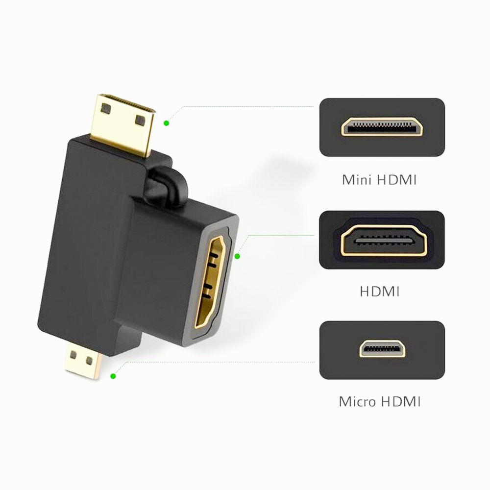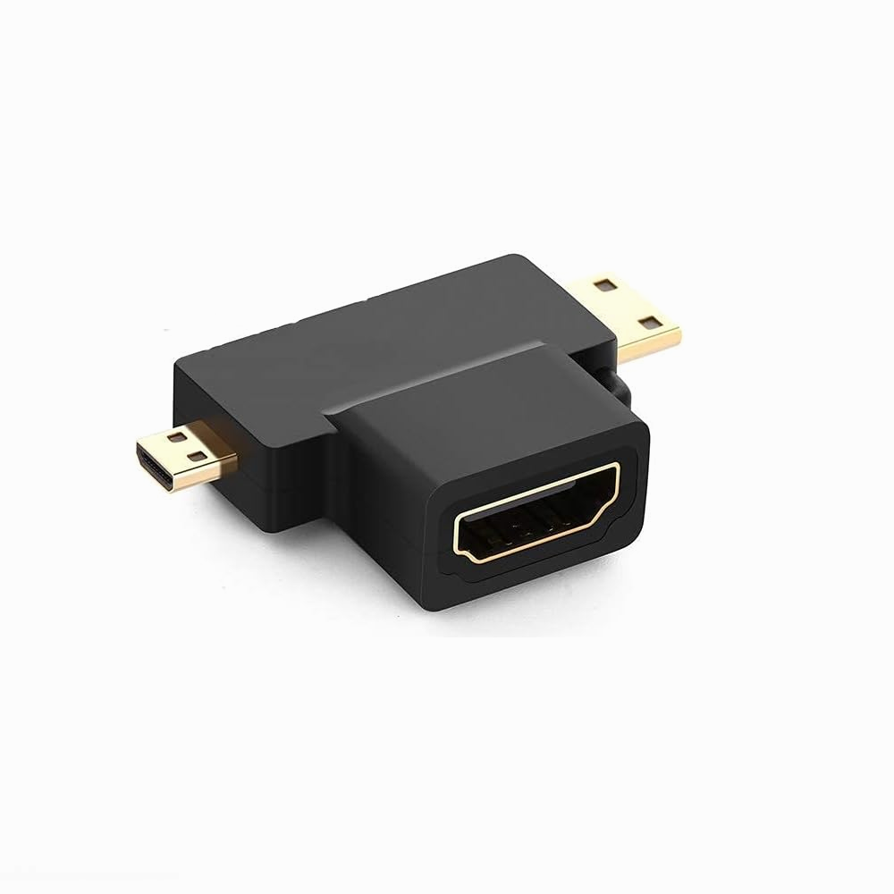 - T SHAPE 3 IN 1 HDMI FEMALE TO MINI & MICRO HDMI MALE 90 DEGREE MULTI ADAPTER