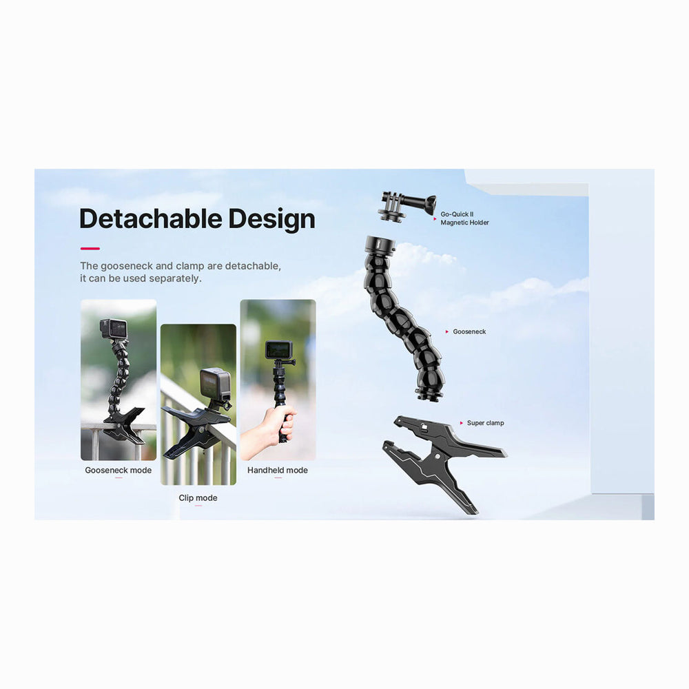 The Ulanzi Go Quick II Magnetic Quick Release Mount Clamp offers a magnetic interface for quick installation and a detachable design for easy use. The flexible gooseneck adjusts to film from different angles.