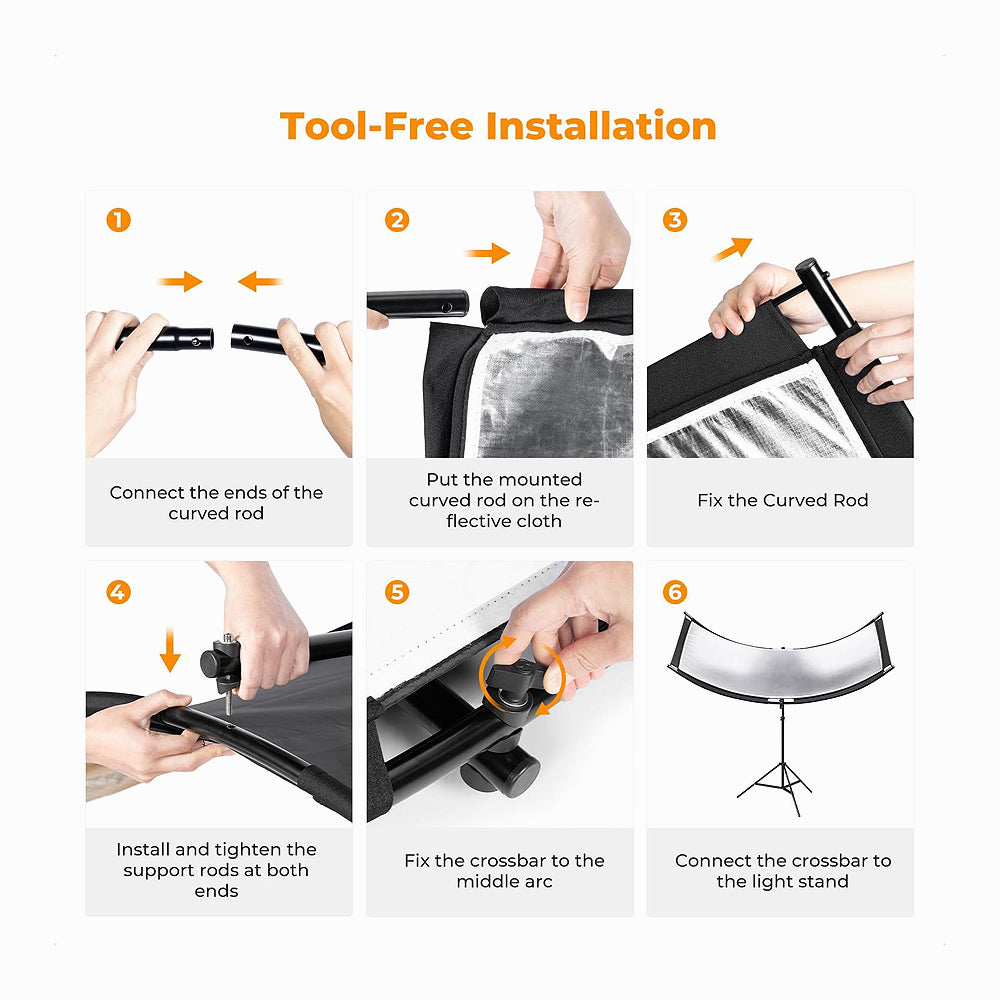 K&F CONCEPT Curved Reflector U-Shape Reflector 180x60cm with 4-in-1 Reflective Fabric, Black/Gold/White/Silver, with 1.9m Stand, with Storage Bag, for Photography Studios