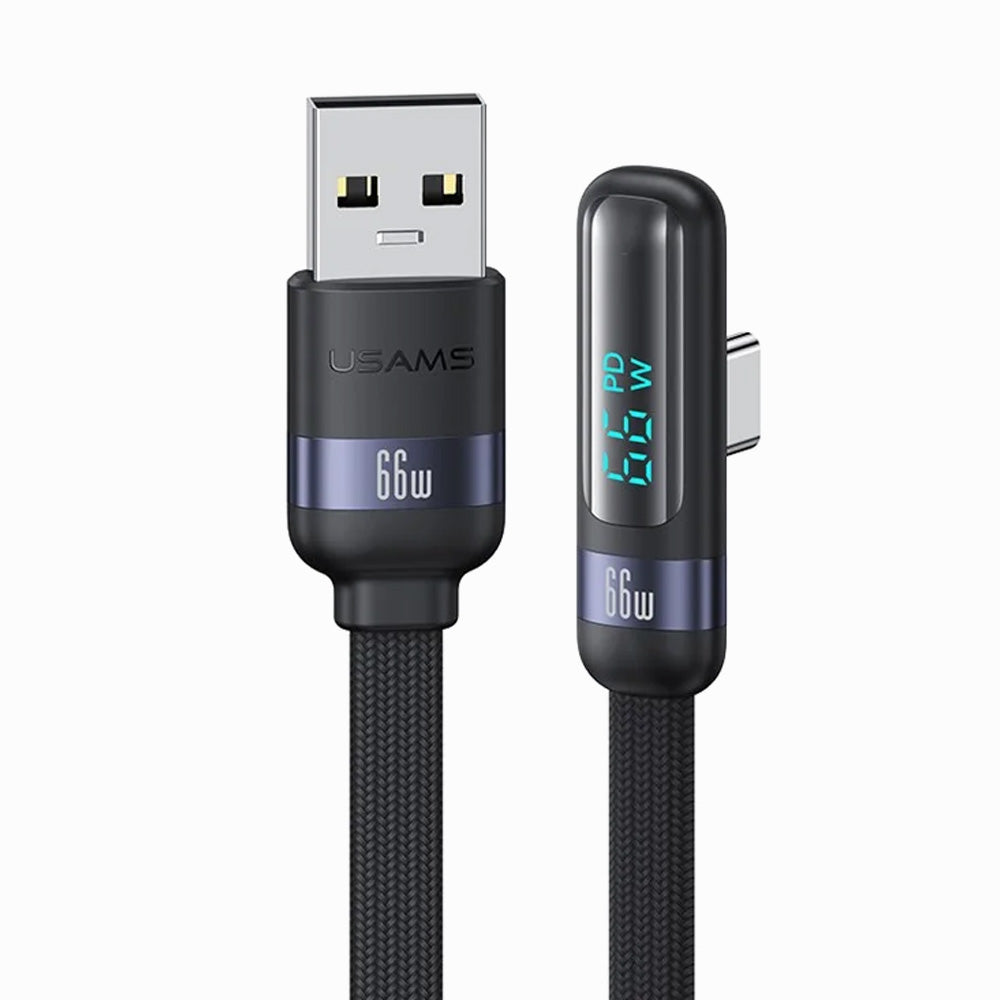 USAMS Wind Series US-SJ651 1.2m USB-A to Type-C Right-angle Data Cable Fast Charging 6A Digital Display Cord - Black
