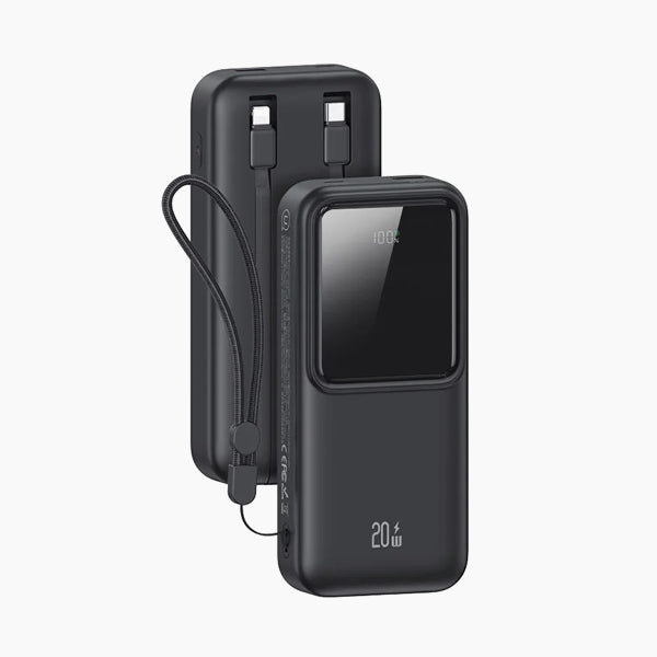 USAMS X-chel Series US-CD212 PD 20W+QC3.0 Dual Port Digital Display Fast Charge Power Bank with 2 Built-in Cables - Black