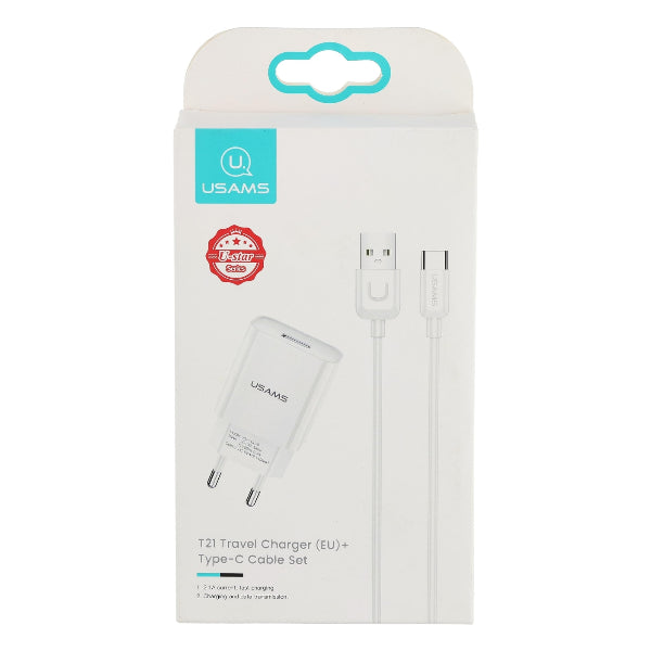 - USAMS T21 TRAV EL CHARGER TYPE-C CABLE SET WHITE (T21YCTC01)
