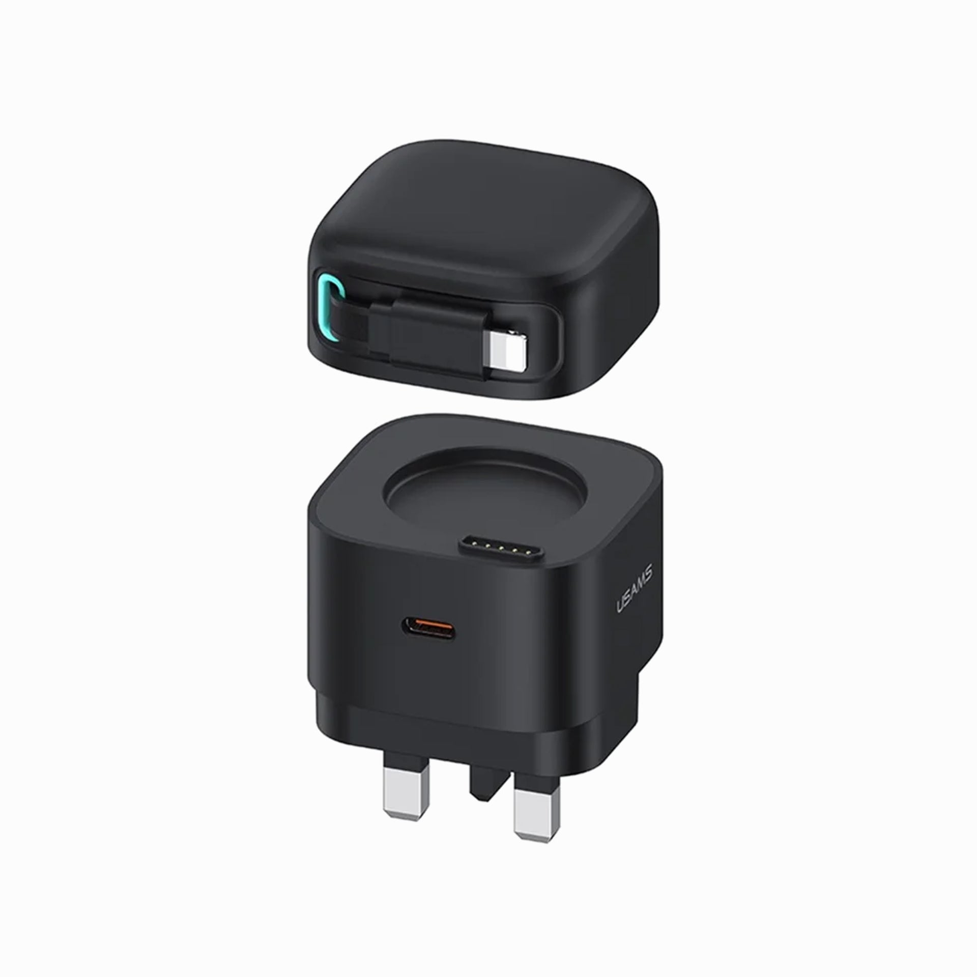 - USAMS US-CC211 SMF Series PD35W 8 Pin + Type-C Dual Port GaN Fast Charger, UK Plug(Black)