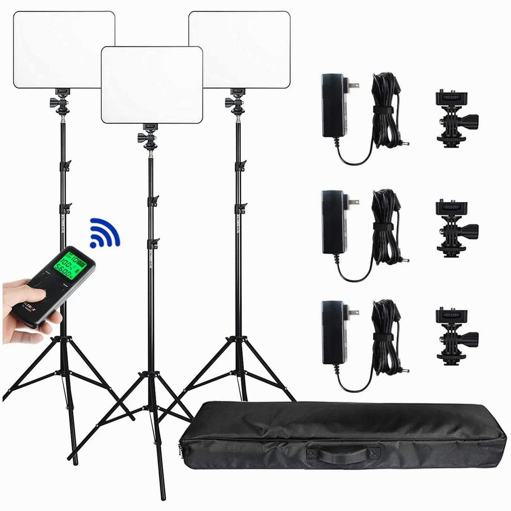 Illuminate your subjects with this Viltrox VL-200T Bi-Color LED Panel with LCD Screen. In this even more affordable kit, you get three VL-200T panels, three mounts and adapters, three power supplies, one remote control, and even a bag to carry your kit.
